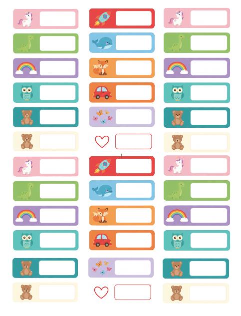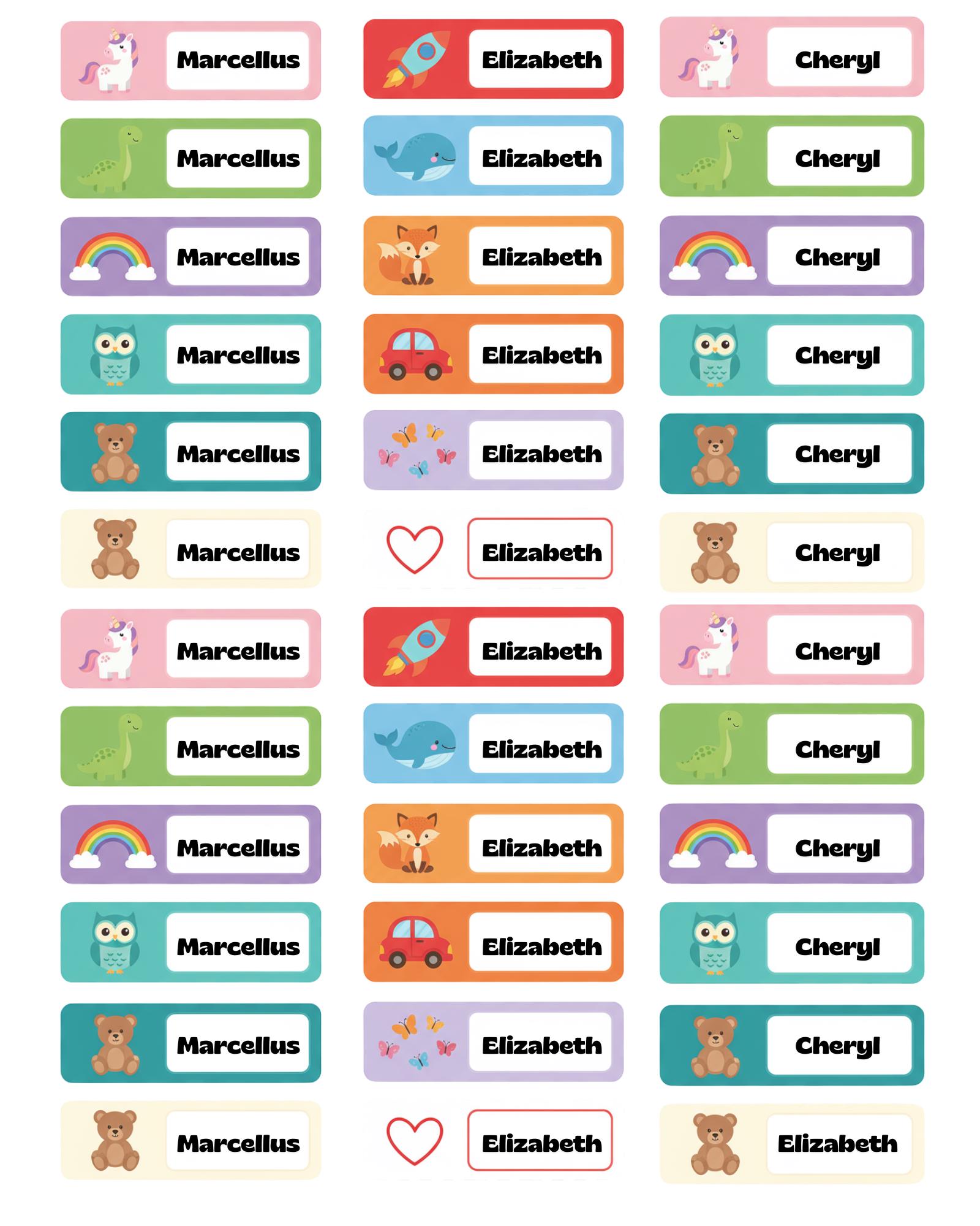 These durable, waterproof vinyl name stickers are perfect for labeling everything from lunchboxes and water bottles to notebooks and folders. Each sheet includes a colorful variety of adorable designs kids will love.